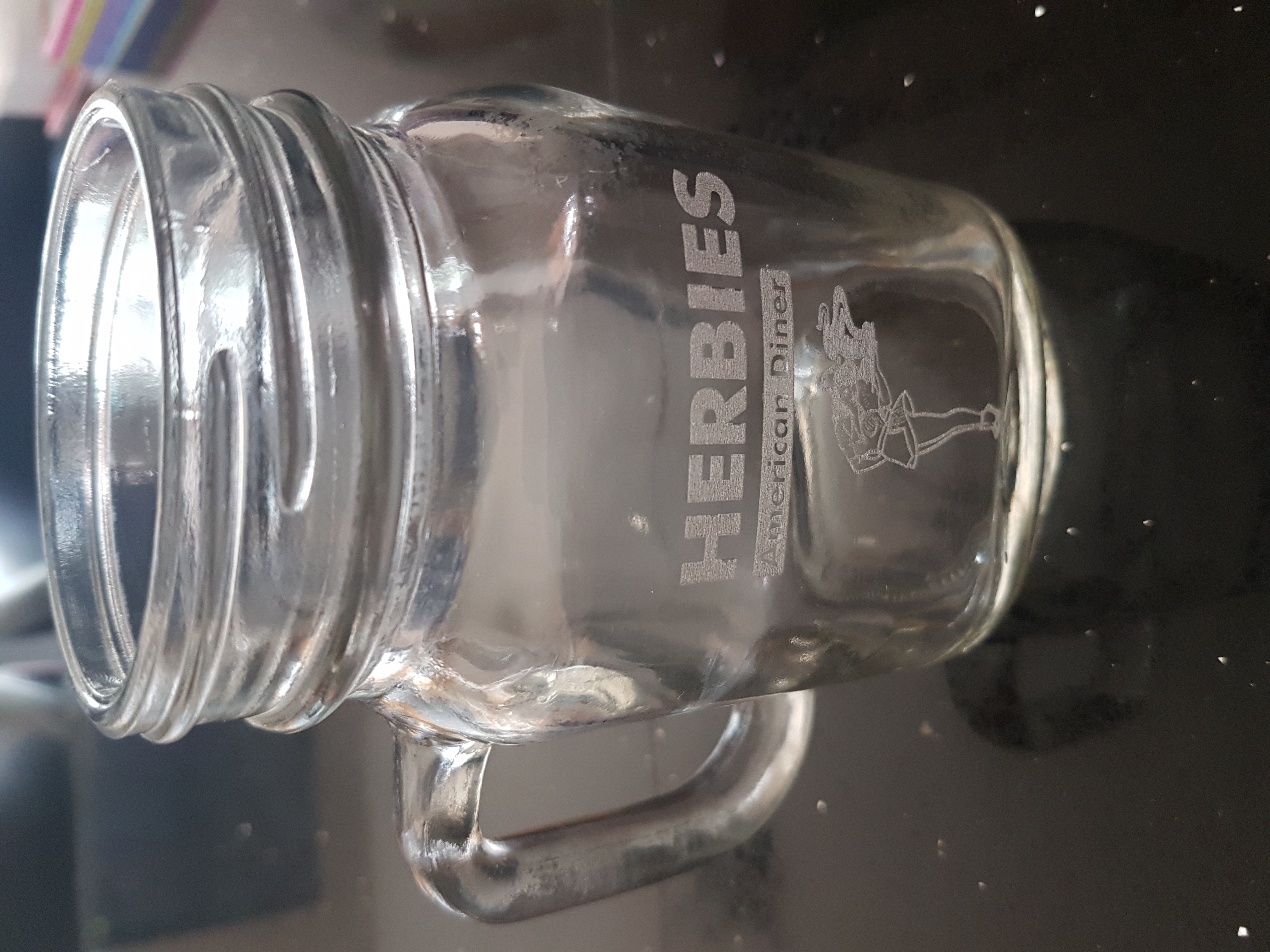 The laser we use can not cut glass but it can mark it, burning the glass surface will create and etched effect on the glass surface, and like wood and metal, if the glass has a painted finish, the laser will remove this to leave the clear glass exposed underneath.