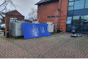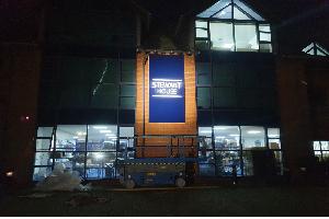 When the former Follett Office in Stevenage was rebranded to Stewart House we had to supply and install three new tray sign covers, each one was 3.6m x 1.6m and made from 3mm solid aluminium, with laser cut letters and finally powder coated to a specific RAL code.